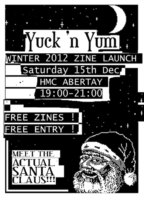 Let’s not forget the wider Yuck ‘n Yum extended family – that’s right, *you*! Our contributors are our second cousins once-removed, and we would have no zine without you. Our spring deadline is approaching fast (March 15), please do send us your work for inclusion in the Spring 2013 issue.