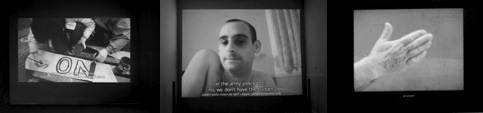 Ruti Sela & Maayan Amir’s 'Beyond Guilt' <2004> further emphasises this notion. The female artists registered on an online dating website and invited men to come to a hotel room in Tel Aviv. It is unclear whether the men were misled about the girls’ intentions, however this is quickly overlooked as a party ensues and conversation flows. 'Beyond Guilt' challenges the viewer's comfort zone, addressing gender role, power and social taboo. As the film develops, references to war and the atrocities the men have committed begin to consume the conversation. The film's intimate setting, focused on human relationship, means Ruti and Maayan successfully depict a society overshadowed by an omnipresent war.